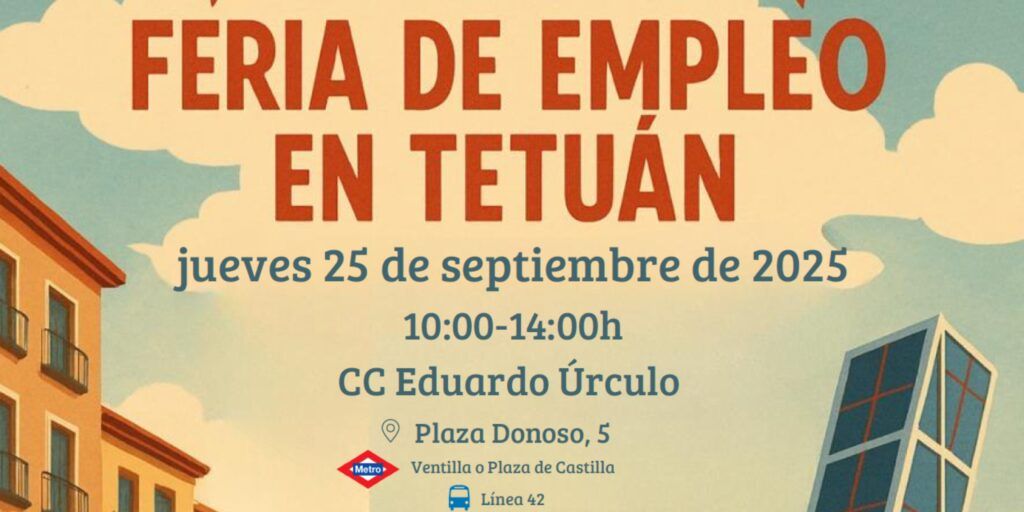 Jueves 25 de septiembre | 10:00-14:00h | CC Eduardo Úrculo El próximo jueves 25 de septiembre de 2025, el Centro Cultural Eduardo Úrculo (Plaza Donoso, 5, Madrid) acoge una nueva edición de la Feria de Empleo en Tetuán, un evento imprescindible para quienes buscan...