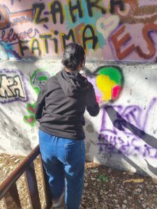 El 12 de noviembre, tras dos intentos frustrados por la lluvia, finalmente visitamos el Centro de Información y Educación Ambiental Dehesa de la Villa (CIEA). ¡A la tercera fue la vencida! Participamos en una intervención comunitaria colaborando en la pintura de un mural junto al equipo creativo Boa Mistura. Además, el personal del CIEA nos mostró sus instalaciones, explicó las actividades abiertas al público y nos habló de la importancia de este parque como pulmón verde para los vecinos.