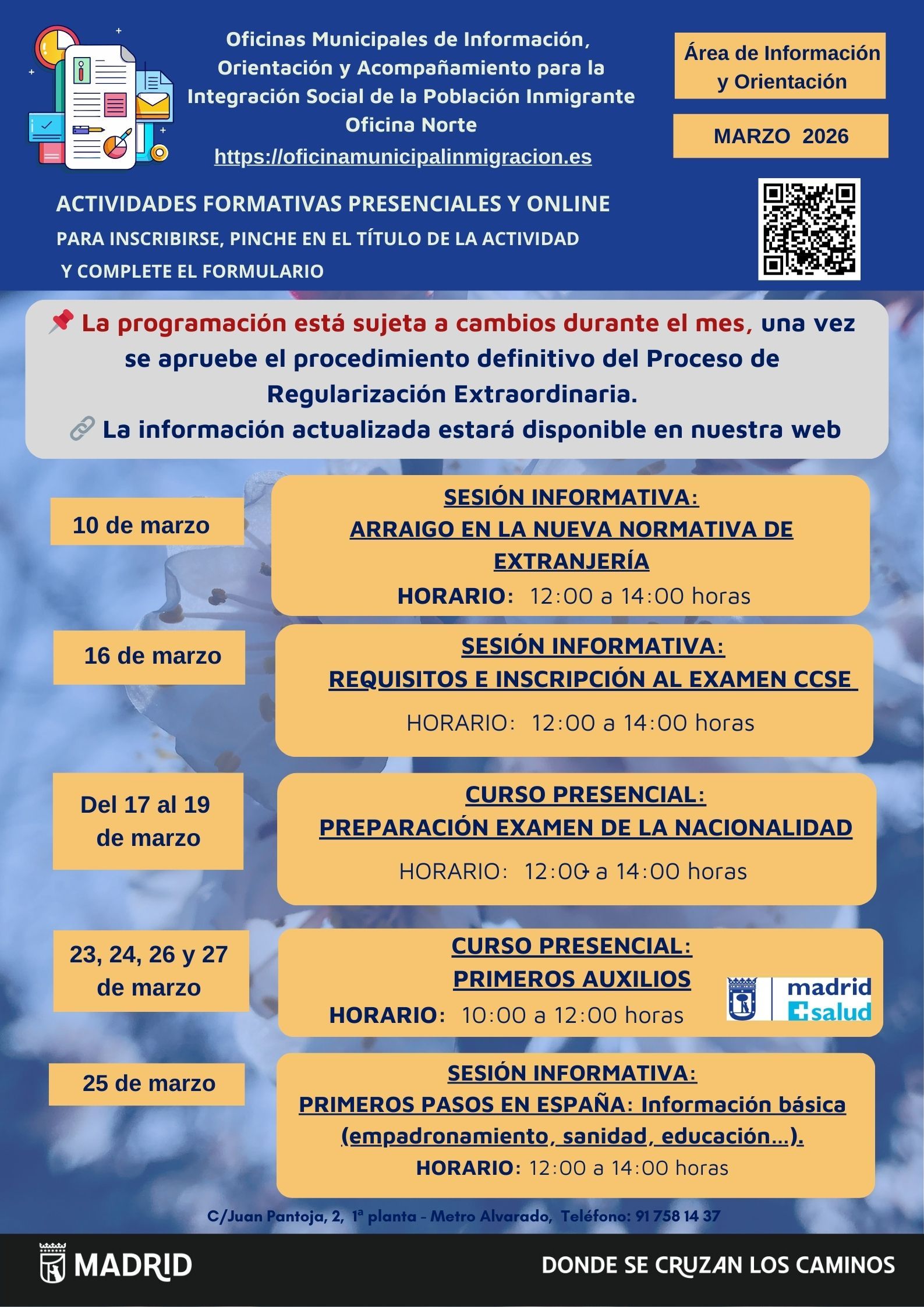 Consulta toda la programación actual de la Oficina Municipal de Información, Orientación y Acompañamiento para la integración Social de la Población Inmigrante norte.